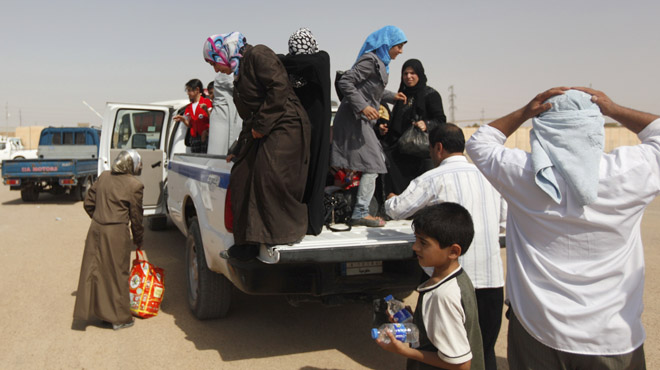 Người Syria chạy đến Iraq sau khi vượt qua biên giới ở Albu Kamal-Qaim ngày 25-7 - Ảnh: Reuters