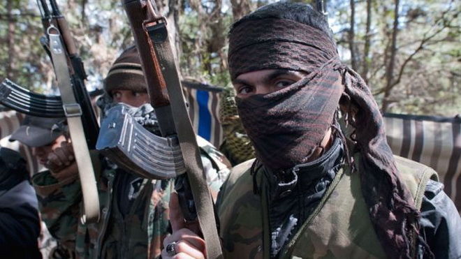 Các sĩ quan Quân đội Tự do Syria - lực lượng đã bắt giữ 48 người Iran - Ảnh: Press TV