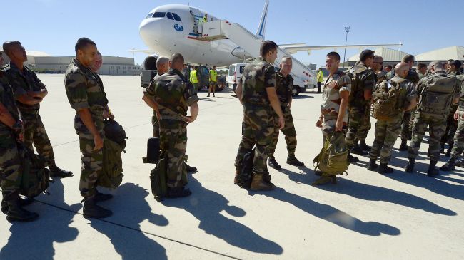 Lính Pháp chuẩn bị lên máy bay A310 tại một căn cứ không quân ở miền nam nước này hôm 9/8 để tới biên giới Syria-Jordan.