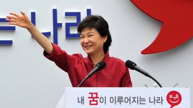 Chính thức tuyên bố sẽ ra tranh cử tổng thống vào tháng 7, bà Park cam kết giảm bớt căng thẳng trong quan hệ với CHDCND Triều Tiên, vốn đã đóng băng nhiều năm dưới thời Tổng thống Lee, cũng như nỗ lực hơn để ngăn chặn tham vọng hạt nhân của Bình Nhưỡng. Bà còn hứa mở rộng phúc lợi xã hội và “dân chủ hóa nền kinh tế” trong bối cảnh chênh lệch giàu nghèo và tỉ lệ thất nghiệp ở người trẻ tăng cao tại nền kinh tế lớn thứ tư châu Á.