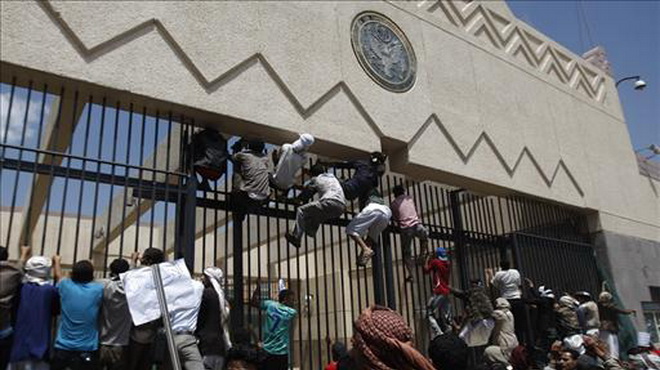 Hàng trăm người biểu tình Yemen đã phá vỡ cổng chính của khu dinh thự Đại sứ quán Mỹ được canh gác cẩn mật tại đông thủ đô Sanaa, hô vang “Chúng tôi xin hi sinh vì người, nhà tiên tri vĩ đại”.