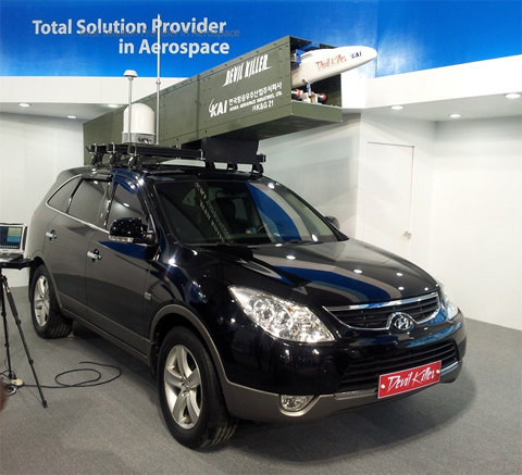 Phi cơ không người lái Devil Killer của KAI được đặt trên một chiếc xe ôtô tại một triển lãm. Ảnh: Militaryphotos