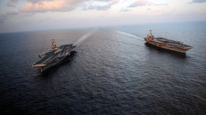 Hai tàu sân bay Mỹ đã có mặt ở tây Thái Bình Dương - Ảnh: US Navy
