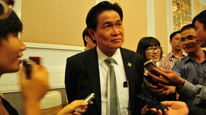 Ông Đặng Văn Thành trao đổi với báo chí tại kỳ đại hội đồng cổ đông thường niên 2011 - Ảnh: Thanh Đạm