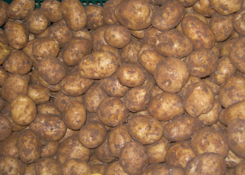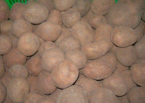 Khoai tây Trung Quốc được "áo" một lớp đất đỏ Đà Lạt để ngụy trang thành hàng nội. Ảnh: Quốc Dũng.