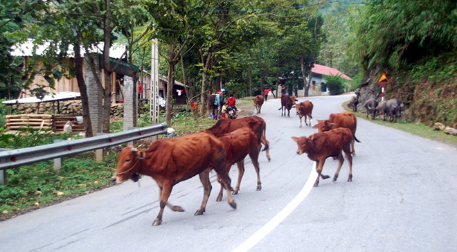 Sơ tán trâu, bò xuống vùng thấp tránh rét - Ảnh: Hồng Thảo