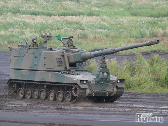 Pháo tự hành 155 mm FH-70, điều khiển tự động, tầm bắn 30 km, có 480 khẩu. Pháo tự hành 155 mm Type 75 có 140 khẩu. Type 99 có 99 khẩu, tầm bắn 24 km, nặng 40 tấn, vừa xuất xưởng đầu năm 2012. Pháo tự hành 203 mm M110 số lượng không rỏ, nặng 38 tấn, tầm bắn 25 km.