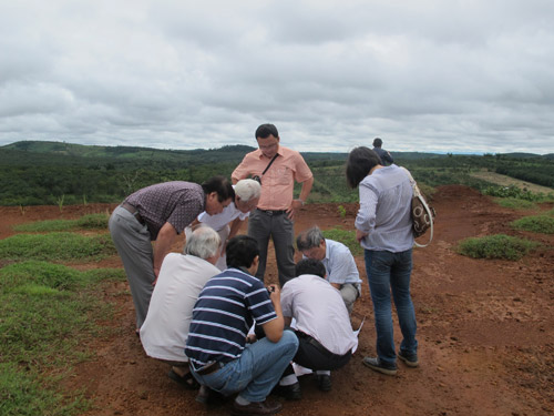 Đoàn khảo sát của Viện Tư vấn phát triển làm việc tại Tân Rai - Lâm Đồng. Ảnh: QUANG TÚ
