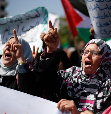 Phụ nữ Palestine biểu tình trong vụ một tù nhân Palestine chết trong nhà tù ở Israel.