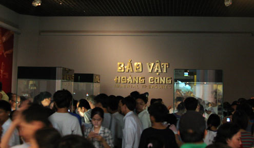 Do lần đầu được chiêm ngưỡng những bảo vật này nên hàng trăm người dân đã chen cứng trong phòng trưng bày và đua nhau ghi lại những hình ảnh đáng nhớ.