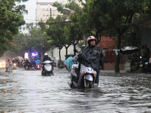 Người Sài Gòn "lội bì bõm” trong mưa chiều