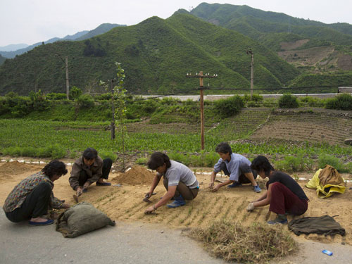 Người dân ở tỉnh North Pyongan (Triều Tiên) làm việc bên đường. Ảnh: AP