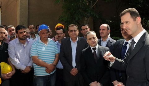 Tổng thống Assad (ngoài cùng bên phải) trong một lần xuất hiện hiếm hoi trước công chúng gần đây