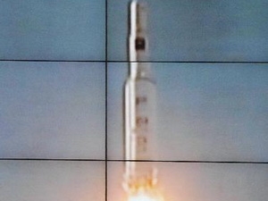 Tên lửa Unha-3 rời bệ phóng ở Trung tâm Vũ trụ Sohae, tỉnh Bắc Pyongan, ngày 12.12. (Nguồn: Kyodo)