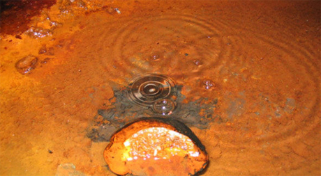 Bong bóng liên tục nổi lên bề mặt vũng nước ngầm trong mỏ đồng và kẽm tại Ontario, Canada do sự hiện diện của nhiều loại khí cần thiết đối với vi sinh vật. Ảnh: Mirror.
