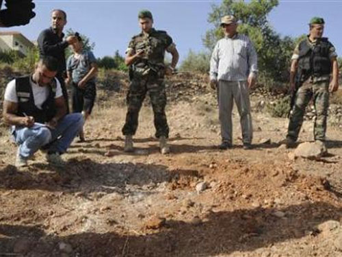 Quân đội Lebanon xem xét khu vực bị nã rocket ở thị trấn Seriine tại thung lũng Bekaa hôm 1-6.