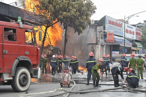 Theo nữ nhân chứng này, sau khi lửa bùng lên gây cháy hai cửa hàng ăn bên cạnh cây xăng thì xe bồn chở xăng cũng bốc cháy dữ dội. “Lửa ở xe bồn chở xăng cháy bùng cao ngang với tòa nhà cao 9 tầng của Bệnh viện Trung ương Quân đội 108. Sau đó, khoảng 20 phút, xe cứu hỏa đến. Lính cứu hỏa tập trung dập lửa hai quán ăn trước, sau đó mới quay sang chữa cháy xe bồn chở xăng”, Thoa kinh hãi kể lại.