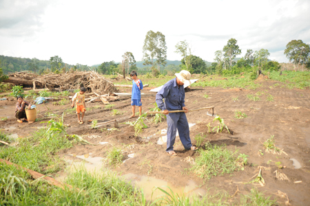 Gương mặt chưa hết bần thần, ông Puih Ơnh (làng Ó) cho biết: Dù ngôi nhà canh rẫy bị sập, chiếc xe ô tô bị hư hại nhưng điều lo lắng nhất của ông vẫn là rẫy mì (sắn) của gia đình bị lũ phá nát, không thể phục hồi được, sắp tới chẳng biết lấy gì ăn. Đau nhất là mấy trăm gốc tiêu trồng ở Đội 20 đã bị lũ cuốn sạch, chỉ còn trơ lại vài chiếc cọc gỗ xiêu vẹo. Khi được hỏi tới đây sẽ dựa vào nguồn nào để sống, Puih Ơnh trả lời bằng một cái lắc đầu...
