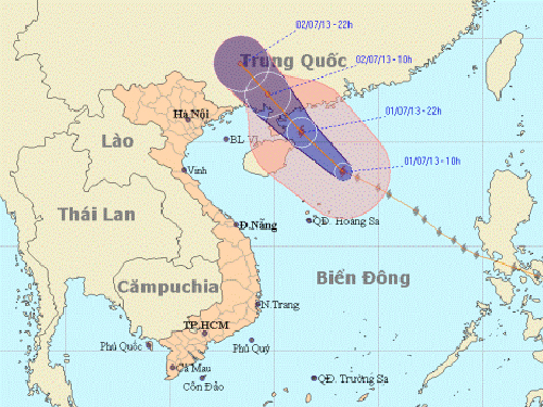 Theo Trung tâm Dự báo Khí tượng thủy văn Trung ương, đến 19 giờ ngày 1-7, vị trí tâm bão số 3 ở vào khoảng 19,5 độ vĩ Bắc; 111,5 độ kinh Đông, cách Đông Bắc đảo Hải Nam (Trung Quốc) khoảng 80 km về phía Đông. Sức gió mạnh nhất ở vùng gần tâm bão mạnh cấp 10, cấp 11 (tức là từ 89-117 km/giờ), giật cấp 12, cấp 13.
