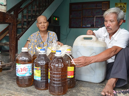 Bà Nguyễn Thị Tài (tổ 5, thôn Châu Lâu) cho biết nhà bà trồng 3,5 sào đậu phộng và mất hơn 3 tháng chăm sóc. Với số đậu thu hoạch bà ép được 141 lít dầu, trị giá khoảng hơn 12 triệu đồng. “Công sức của cả gia đình tôi ròng rã hơn 3 tháng trời nằm trong chừng đó đậu. Nay ép về thì dầu đen sẫm, ăn không được, bán cũng không dám vì sợ người khác ăn thì mình vương tội” - bà Tài trần tình. Nhiều hộ dân khác cũng lâm vào cảnh trắng tay sau khi đầu tư vào mùa đậu phộng. Nhiều người điêu đứng vì tiền mua đậu giống, phân bón… đều đi vay mượn nay không biết lấy gì để trả.