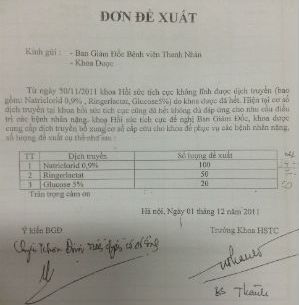 Phản ảnh với phóng viên, một số cán bộ, nhân viên khoa dược, BV Thanh Nhàn cho hay tình trạng “thuốc thiếu, thuốc thừa” diễn ra từ cuối năm 2011 và thể hiện rõ nhất vào cuối năm 2012 vừa qua. Hồ sơ, tài liệu mà các cán bộ, nhân viên này cung cấp cho nhóm phóng viên cho thấy do BV dự trù mua thuốc không sát với thực tế nên đã dẫn đến tình trạng có loại thuốc không đủ để dùng, có loại thuốc lại thừa, phải dùng quá nhiều dẫn đến việc kê đơn thuốc không an toàn.